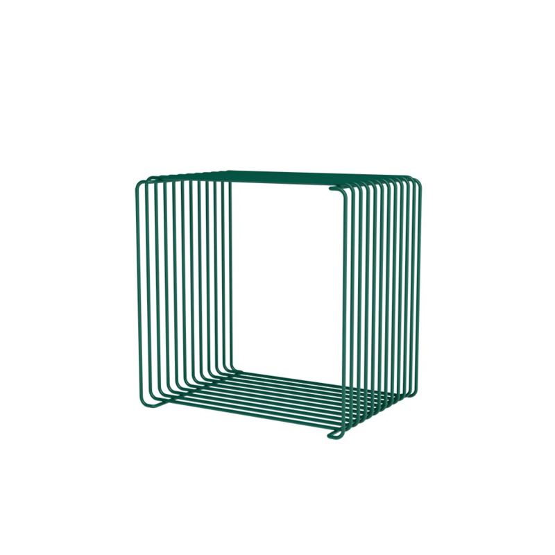 De Panton Wire is gemaakt van 5 mm draad, naar keuze in chroom of in 6 kleuren gepoedercoat gelakt: snow, black, pine (groen), monarch (blauw), black red (tegen zwart aan) of rosehip (rozerood). 7 keuzes dus. De planken zijn in dezelfde kleuren te krijgen, of van glas.
