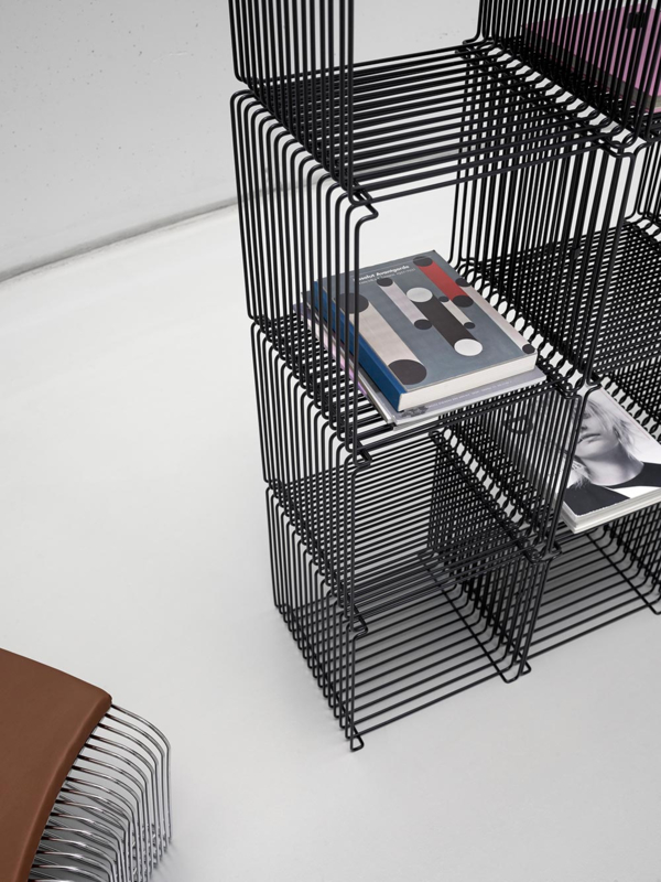 De Panton Wire uit 1971 is een typisch voorbeeld van zijn werk: design en logica komt er prachtig in samen. Panton ontwierp de module met het idee dat de chromen draad de omringende kleur zou opvangen. Ruw en toch elegant, licht en toch industrieel. De Panton Wire-unit kan afzonderlijk of in combinatie worden gebruikt: op de vloer, hangend aan de muur, gestapeld of als ruimteverdeler.