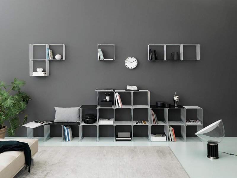 Om het systeem aan te vullen kunnen je planken voor erboven of erin kiezen. Die komen in dezelfde kleuren, plus een glazen plank.