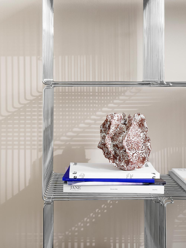 De Panton Wire uit 1971 is een typisch voorbeeld van zijn werk: design en logica komt er prachtig in samen. Panton ontwierp de module met het idee dat de chromen draad de omringende kleur zou opvangen. Ruw en toch elegant, licht en toch industrieel. De Panton Wire-unit kan afzonderlijk of in combinatie worden gebruikt: op de vloer, hangend aan de muur, gestapeld of als ruimteverdeler.