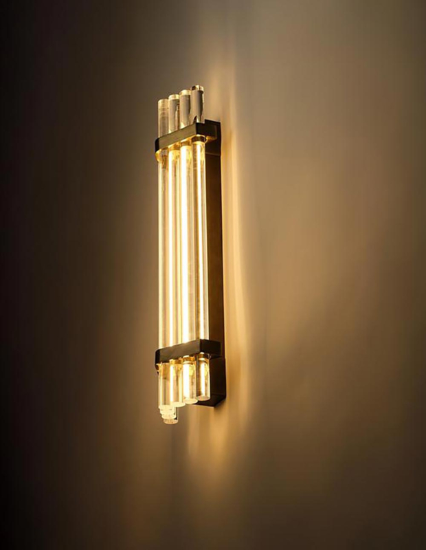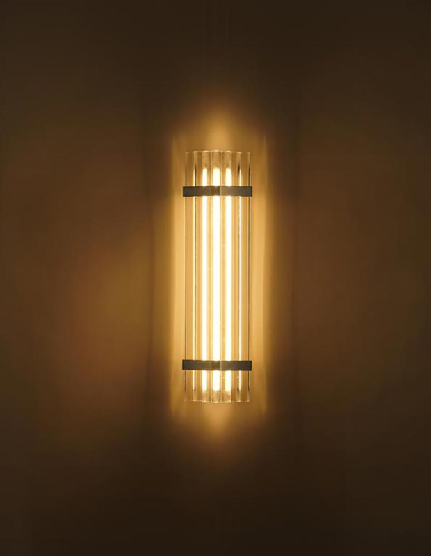 Hoe ontwerp je een hanglamp, wandlamp of plafondarmatuur die zowel discreet als verfijnd is? Een armatuur dat naadloos in een ruimte opgaat zonder deze te overheersen, en tegelijkertijd de tijdloze elegantie van Art Deco oproept en deze herinterpreteerd met een moderne toets. Frank Lloyd Wright had dit idee al verkend met de gevel van het Johnson Wax Building waar glazen buizen het buitenlicht op een bijna magische manier binnen verspreidden.