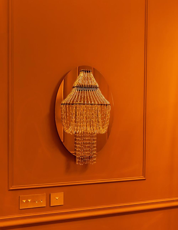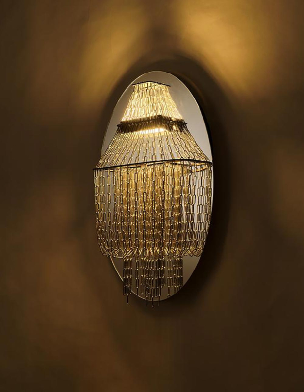 De vorm en de contouren zijn hetzelfde als die van de meest klassieke kroonluchters; deze 'kroonluchter aan kettingen' is in alle opzichten uitzonderlijk: het vereeuwigt de magie die licht kan creëren. Zonder glas en zonder kristal weerkaatst het licht op de 6400 roestvrijstalen schakels, waardoor een veelheid aan lichtdruppels ontstaat.