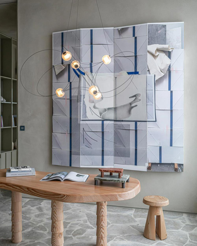 Dit principe is duidelijk zichtbaar in Munari, opgevat als een wetenschappelijk spel dat een grafische suspensie vormt, die doet denken aan een magnetische wervelwind die krachtige maar dromerige lichten uitstraalt. Munari is Lutz Pankows eerste samenwerking met DCW éditions.