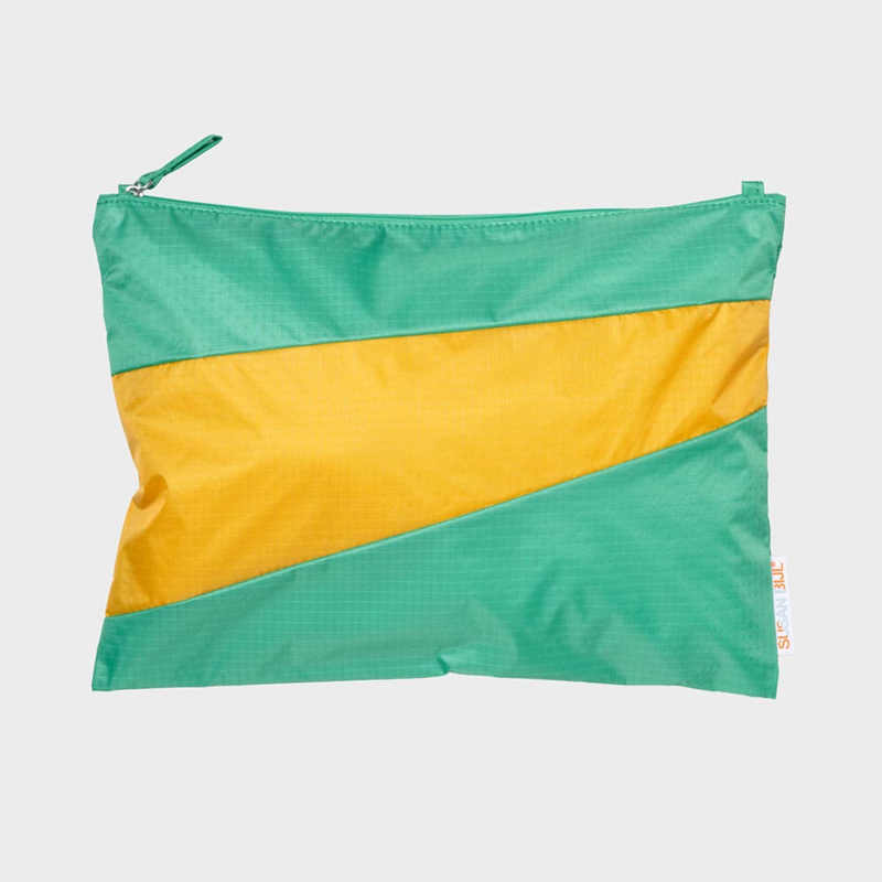 De ‘New Pouch’ is een kleurrijke, lichte maar sterke etui of handtas van de Nederlandse ontwerpster Susan Bijl en is onderdeel van een inmiddels vrij uitgebreide collectie. De tas is gemaakt van 100% gerecycled ripstop nylon, milieuvriendelijk gekleurd en heeft een waterdichte fluorine-vrije coating.
