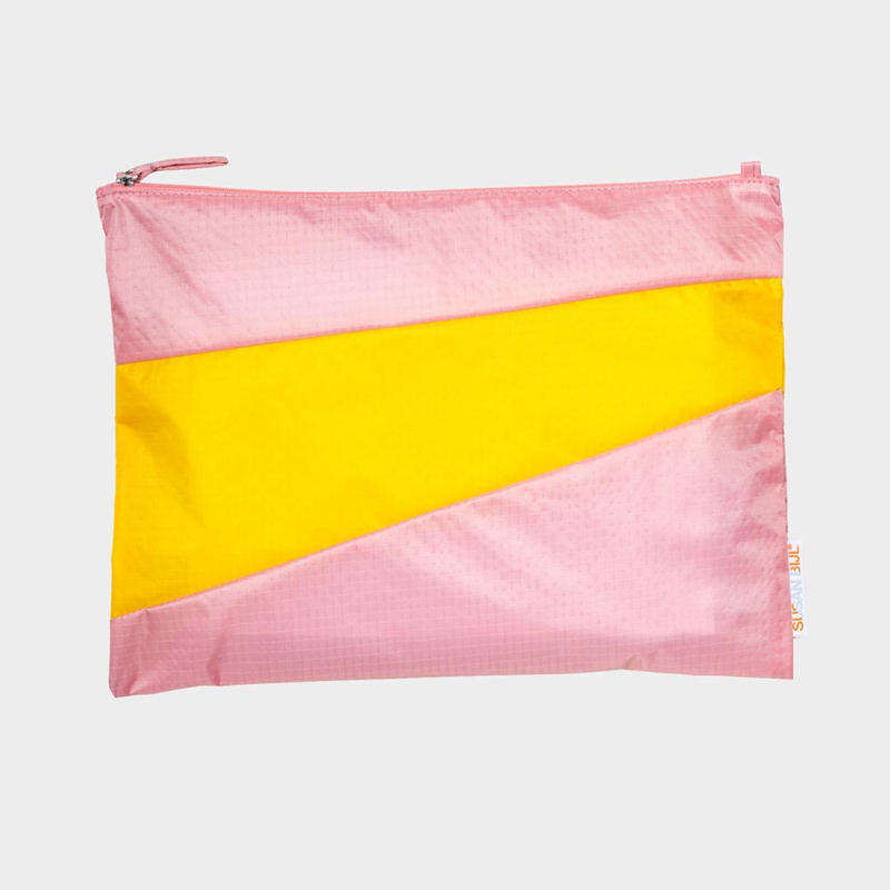 De ‘New Pouch’ is een kleurrijke, lichte maar sterke etui of handtas van de Nederlandse ontwerpster Susan Bijl en is onderdeel van een inmiddels vrij uitgebreide collectie. De tas is gemaakt van 100% gerecycled ripstop nylon, milieuvriendelijk gekleurd en heeft een waterdichte fluorine-vrije coating.