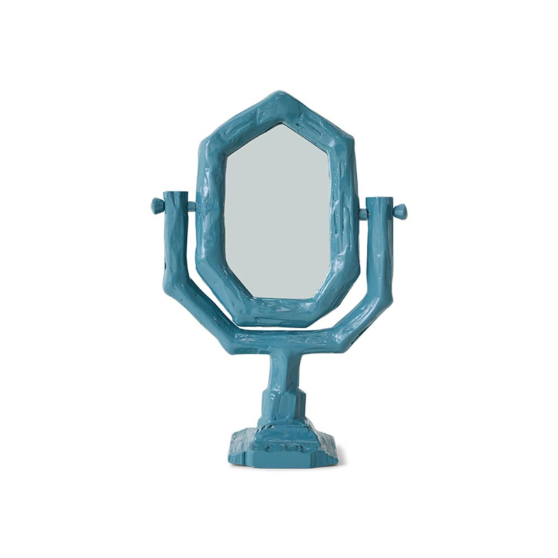 Deze dressoirspiegel van Teun Zwets voor het Nederlandse designmerk HKLIVING is geinspireerd op klassieke kaptafelspiegels en heeft de prachtige karakteristieke uitstraling dat al zijn werk kenmerkt: ongefilterd, met felle kleuren en in hoogglans, gemaakt van ruwe materialen die eruitzien alsof ze rechtsreeks uit zijn werkplaats komen. Ze zijn als personages die in je interieur absoluut zullen opvallen.