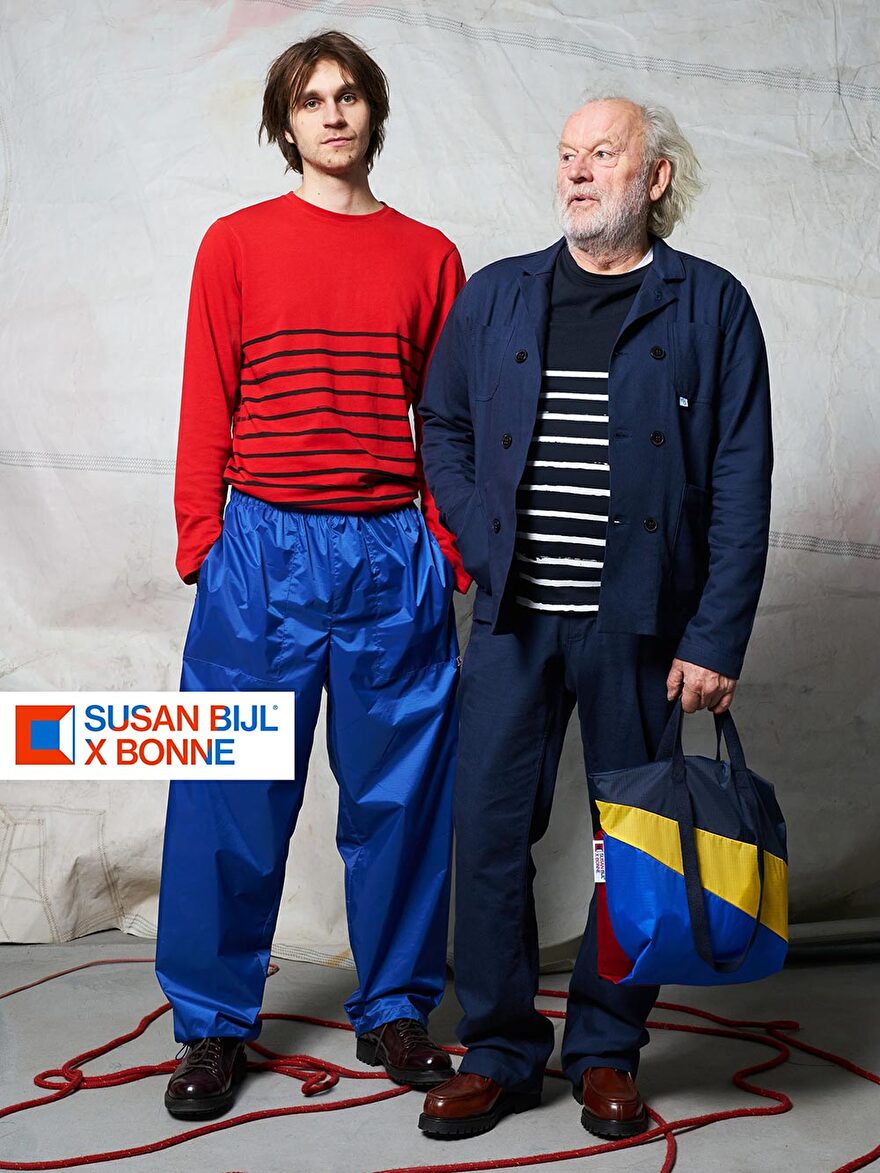 De serie SUSAN BIJL X BONNE is uitgekomen in april 2026. Het is onderdeel van de BONNE FW26-collectie (The Sailor) en vertelt verhaal van de hedendaagse duurzame vrachtmethoden. De inspiratie komt van de kleurrijke spinnakerzeilen van plezierjachten, gemaakt van hetzelfde lichtgewicht, duurzame nylon ripstop-materiaal als de tassen van SUSAN BIJL. Het is daranaast geïnspireerd op de kleuren en vormen van het nautische alfabet: de seinvlaggen die zeevaarders al eeuwenlang de weg wijzen. De samenwerking bestaat uit de nieuwe Shopping Bag Large en de nieuwe Trash Bag Medium, beide verkrijgbaar in vijf kleuren, plus een waterdichte anorak en een waterdichte broek in Sailor Blue. Waterdichte essentials ontworpen voor het leven aan boord en dagelijks gebruik.
