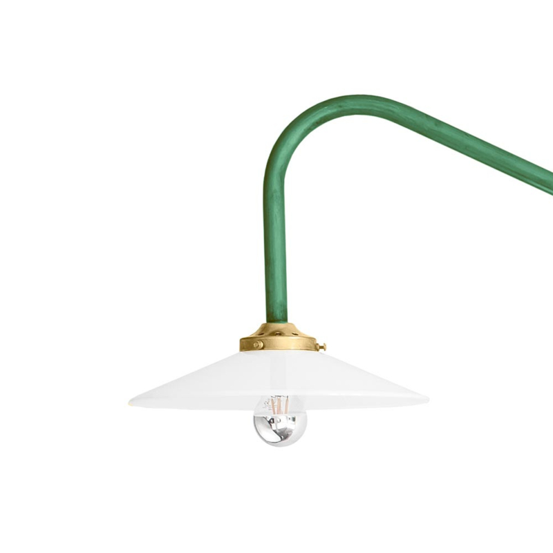De Hanging Lamp n°1 is te krijgen in 6 kleuren: gelakt in het zwart, curry, blauw, groen of in ongelakt staal of messing. Ze eindigen allemaal in een prachtig eenvoudig melkwit kapje.