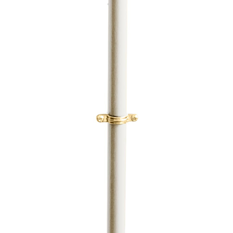 De lampen hoef je niet per se met een plafondcontactpunt te verbinden: er is een reeks die je aan de muur bevestigt en die in een mooie boog boven je fauteuil of tafel uitkomt. Dat is ook exact waarom ze deze lampen destijds ontworpen: voor hun nieuwe (maar oude) huis waar geen stroompunt boven de tafel bleek bedachten ze een lamp die vanaf de vloer tot het plafond reikte, en aan de muur bevestigd kon worden.