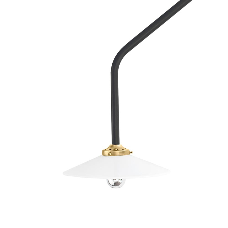 De Hanging Lamp n°4 is te krijgen in 3 kleuren: gelakt in het zwart, blauw of messing. Ze eindigen allemaal in een prachtig eenvoudig melkwit kapje.