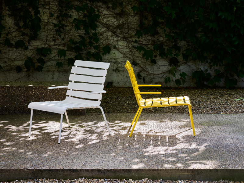 De serie bestaat uit een kleine tuintafel (70 x 70 cm), een grote tuintafel (179 x 85 cm), een tuinstoel met of zonder armleuningen, een krukje en een lounge stoel, allen te krijgen in de kleuren gebroken wit, zwart of prachtig geel. Ze zijn gemaakt van gepoedercoat aluminium en daardoor zeer duurzaam.