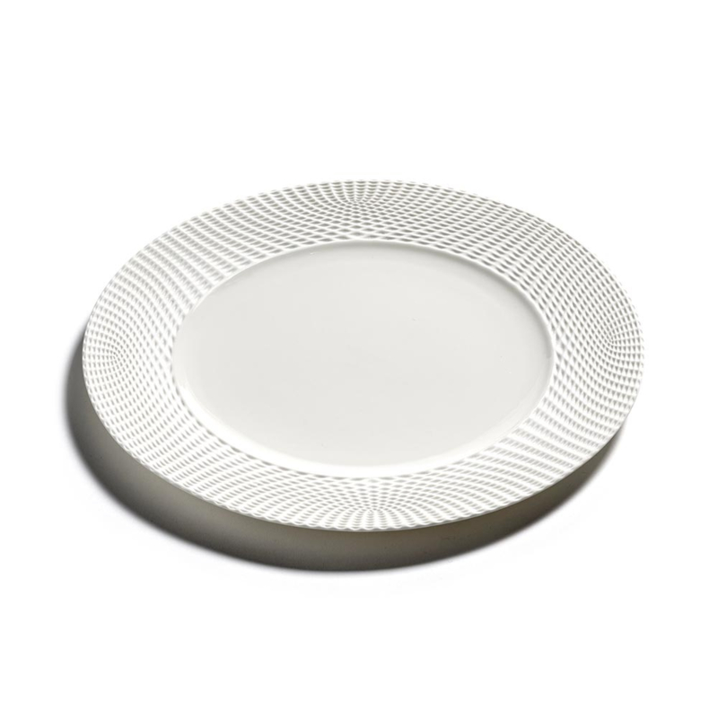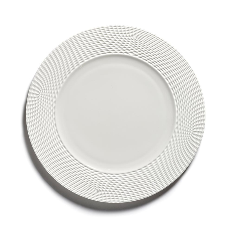 Dit porseleinen bord van Ann Van Hoey voor Serax heeft een verfijnd, zorgvuldig patroon, ontworpen vanuit wiskundige principes. Het bord is onderdeel van het servies genaamd ‘Nido’. Wij houden van dagelijkse voorwerpen met grote schoonheid, waar dit servies zeker onder valt.