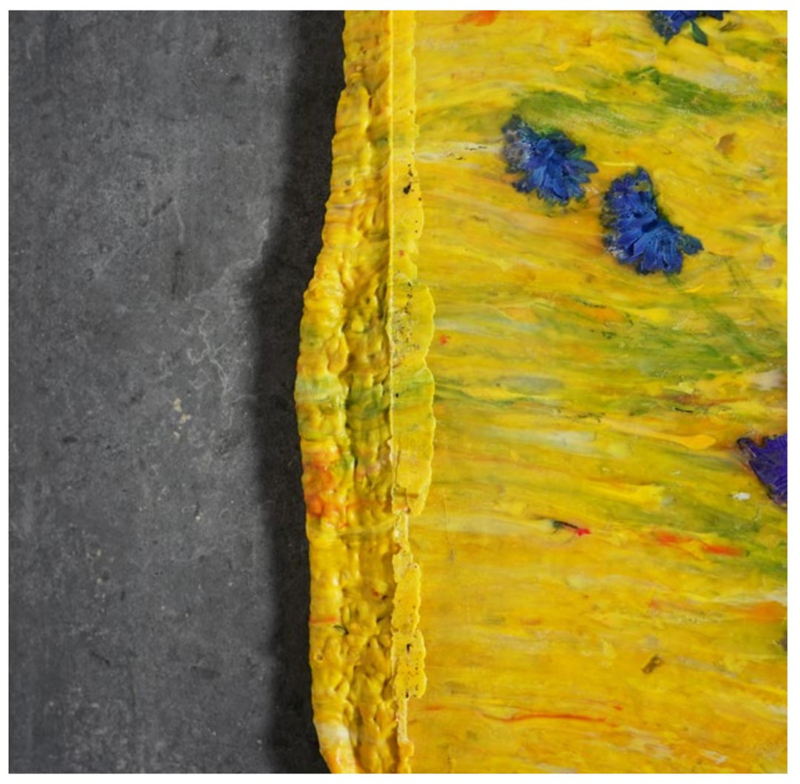 De 'artplant' serie van Klaas Kuiken zijn schilderijen gemaakt van plastic afval. Prachtige objecten met een poetische uitstraling, waarbij de grove structuur van het materiaal mooi contrasteert met de bloemen. De schilderijen worden geperst, de bloemen die meegeperst worden zijn kunstof bloemen verzameld uit de kringloopwinkel in Arnhem.