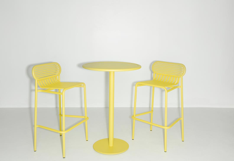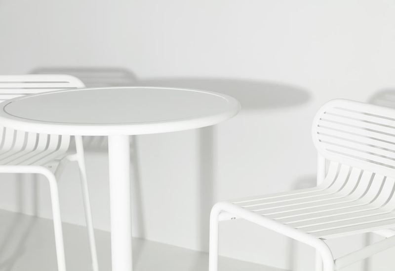 Het Franse tuinmeubilair 'Week-end' van Studio BRICHETZIEGLER voor het label Petite Friture blinkt uit in frisheid: omdat ze van gepoedercoat aluminium zijn gemaakt zijn ze superlicht en sinds 2023 zijn ze te krijgen in maar liefs 20 werkelijk prachtige kleuren. De tuinstoelen en tafels zijn bovendien water en UV- bestendig, geschikt voor gebruik aan zee en worden geleverd met 5 jaar garantie. De stoelen zijn zo ontworpen dat ze 6 hoog gestapeld kunnen worden.