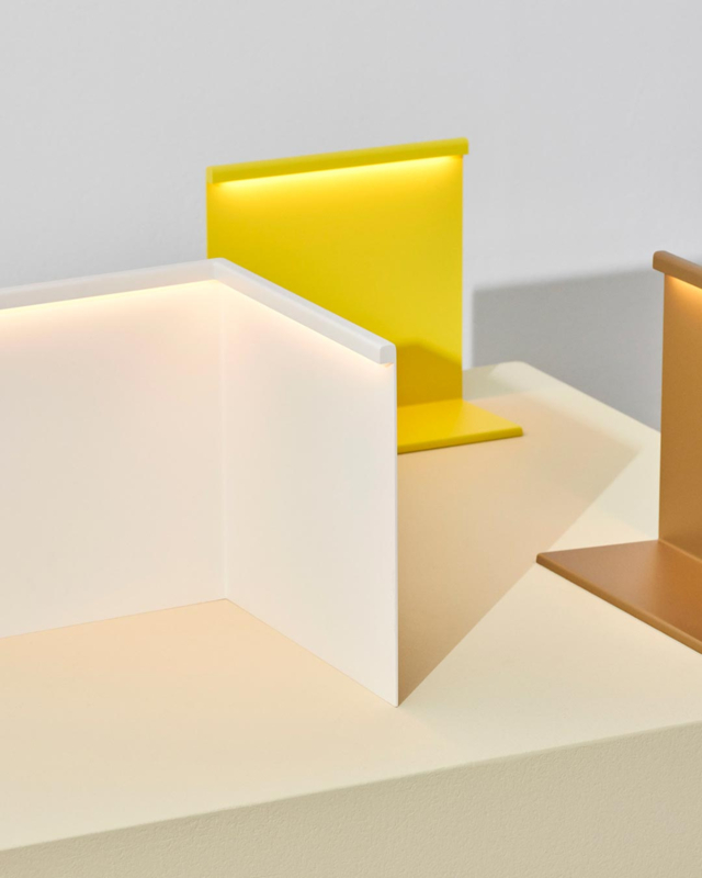 De LBM Tafellamp van Moises Hernandez voor HAY komt voort uit zijn fascinatie voor geometrie, kleur, licht en schaduwen. De eenvoud van de vorm met zacht licht maakt de lamp zowel in gebruik als uitgeschakeld aantrekkelijk. De geïntegreerde LED-lamp met inline stappendimmer zorgt voor een sfeervol downlight.