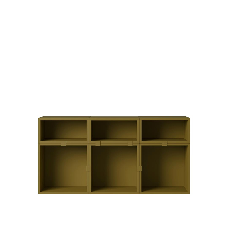Het modulaire kastsysteem Stacked Storage System van designer Julien De Smedt voor Muuto is buitengewoon eenvoudig maar tegelijkertijd extreem veelzijdig. Er zijn 3 type modules die door hun verhoudingen gemakkelijk kunnen worden gecombineerd: er is een kleine smalle module van 21,6 x 43,8 cm, een vierkante module van 43,8 x 43,8 cm en een grote module van 43,8 x 65,4 cm, allen uitgevoerd in dezelfde diepte, namelijk 35 cm. Deze zijn met of zonder achterwand, met of zonder deur, en in vier verschillende kleuren te combineren: wit, grijs, bruin-groen of eiken.