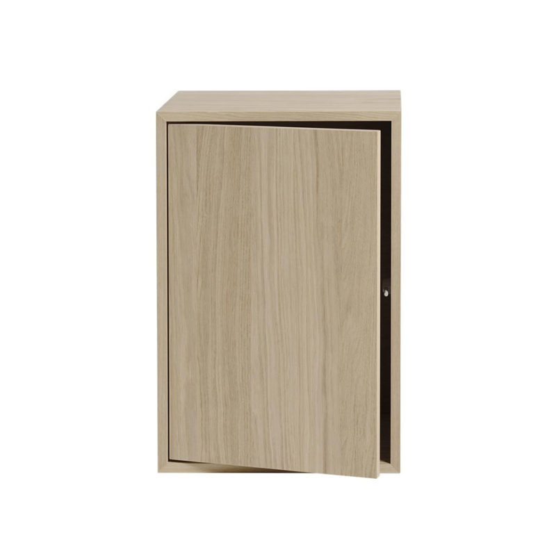 Het modulaire kastsysteem Stacked Storage System van designer Julien De Smedt voor Muuto is buitengewoon eenvoudig maar tegelijkertijd extreem veelzijdig. Er zijn 3 type modules die door hun verhoudingen gemakkelijk kunnen worden gecombineerd: er is een kleine smalle module van 21,6 x 43,8 cm, een vierkante module van 43,8 x 43,8 cm en een grote module van 43,8 x 65,4 cm, allen uitgevoerd in dezelfde diepte, namelijk 35 cm. Deze zijn met of zonder achterwand, met of zonder deur, en in vier verschillende kleuren te combineren: wit, grijs, bruin-groen of eiken.