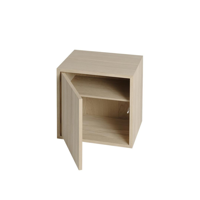 Het modulaire kastsysteem Stacked Storage System van designer Julien De Smedt voor Muuto is buitengewoon eenvoudig maar tegelijkertijd extreem veelzijdig. Er zijn 3 type modules die door hun verhoudingen gemakkelijk kunnen worden gecombineerd: er is een kleine smalle module van 21,6 x 43,8 cm, een vierkante module van 43,8 x 43,8 cm en een grote module van 43,8 x 65,4 cm, allen uitgevoerd in dezelfde diepte, namelijk 35 cm. Deze zijn met of zonder achterwand, met of zonder deur, en in vier verschillende kleuren te combineren: wit, grijs, bruin-groen of eiken (fineer).