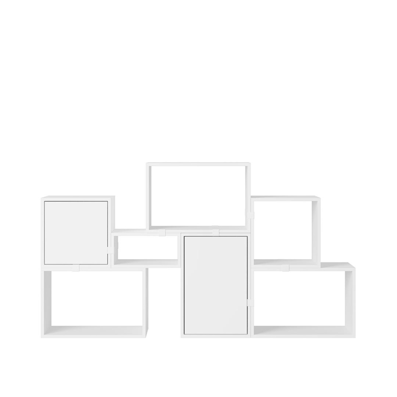Het modulaire kastsysteem Stacked Storage System van designer Julien De Smedt voor Muuto is buitengewoon eenvoudig maar tegelijkertijd extreem veelzijdig. Er zijn 3 type modules die door hun verhoudingen gemakkelijk kunnen worden gecombineerd: er is een kleine smalle module van 21,6 x 43,8 cm, een vierkante module van 43,8 x 43,8 cm en een grote module van 43,8 x 65,4 cm, allen uitgevoerd in dezelfde diepte, namelijk 35 cm. Deze zijn met of zonder achterwand, met of zonder deur, en in vier verschillende kleuren te combineren: wit, grijs, bruin-groen of eiken.