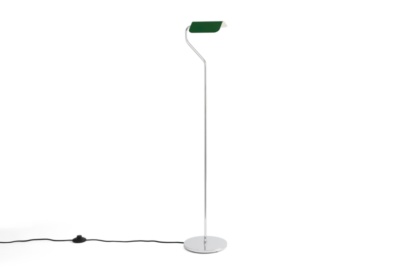 De Apex Floor Lamp is ontworpen door de Britse ontwerper John Tree, geïnspireerd op de klassieke bankierslamp. De gevouwen stalen lampenkappen geven de lamp een opvallend puntdakachtig silhouet, dat niet alleen de naam van de lamp inspireerde, maar ook een opvallend contrast creëert met de chroomkleurige voetstukken. Dankzij de verstelbare clip bevestig je de lamp eenvoudig aan diverse oppervlakken. Zowel de kleurrijke lampenkap als de verstelbare arm kunnen 360 graden draaien, waardoor je optimale controle hebt om het licht in elke richting te richten.