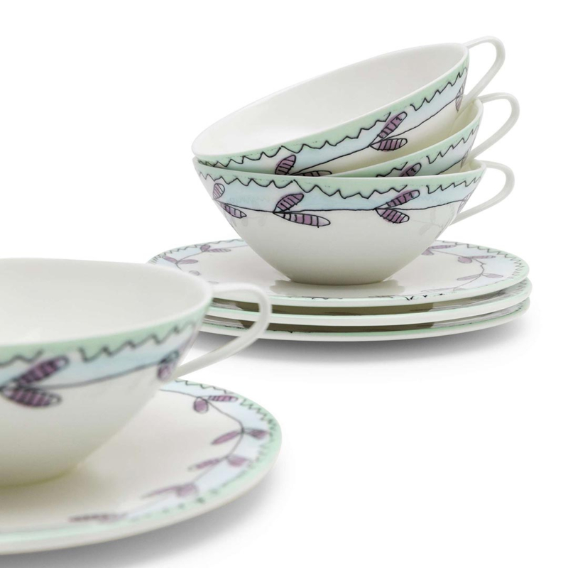 Het servies Midnight Flowers van Marni voor Serax bestaat uit maar liefs 120 delen en toont met deze collectie de artistieke visie van het Italiaanse modehuis. De bloemmotieven zijn ontworpen door Francesco Risso, de creatieve directeur van Marni. De patronen worden aangebracht op fine bone china porselein met behulp van decals, waarna het geheel wordt geglazuurd om de slijtvastheid te verbeteren. De licht asymmetrische vormen van de Marni borden, kommen, kopjes, schotels en theepotten benadrukken de kwaliteit van het handafgewerkte porselein. Deze collectie is niet alleen mooi, maar ook een bewijs van vakmanschap en creativiteit, perfect voor elke tafelsetting.