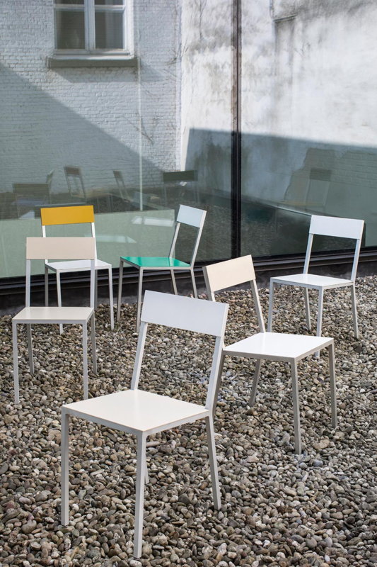 De alu chair van de designers Muller Van Severen - een samenwerking van de fotograaf Fien Muller en kunstenaar Hannes Van Severen - voor het Belgische designlabel Valerie Objects is oorspronkelijk ontworpen als tuinstoel voor het paviljoen van Anne Holtrop in Bahrein voor de World Expo 2015 in Milaan. Omdat de stoel van aluminium is gemaakt is hij vrij licht en geschikt om zowel binnen als buiten te gebruiken. De stoelen zijn behandeld met bijenwas en een UV-beschermende lak.