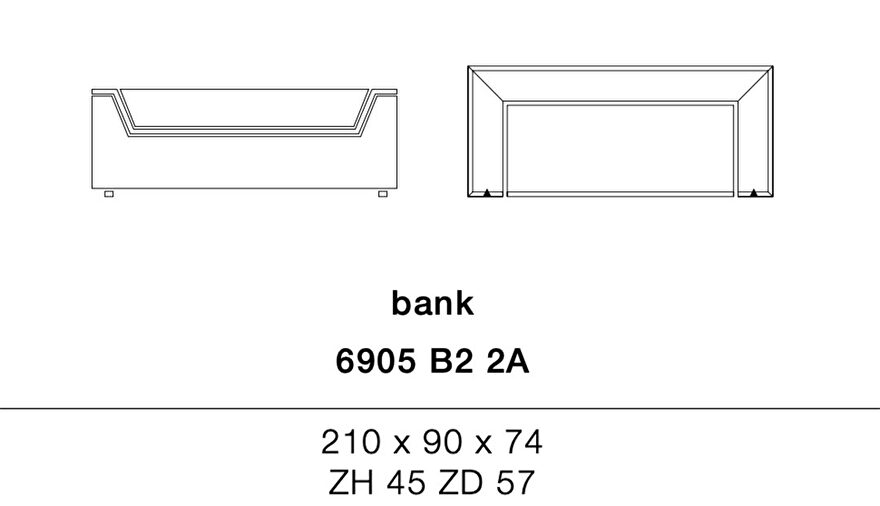 De 6905 heeft een zitvlak met een diepte van 57 cm en een zithoogte van 45 cm. De totale diepte van de bank is 90 cm. De hoogte met rugleuning is 74 cm.