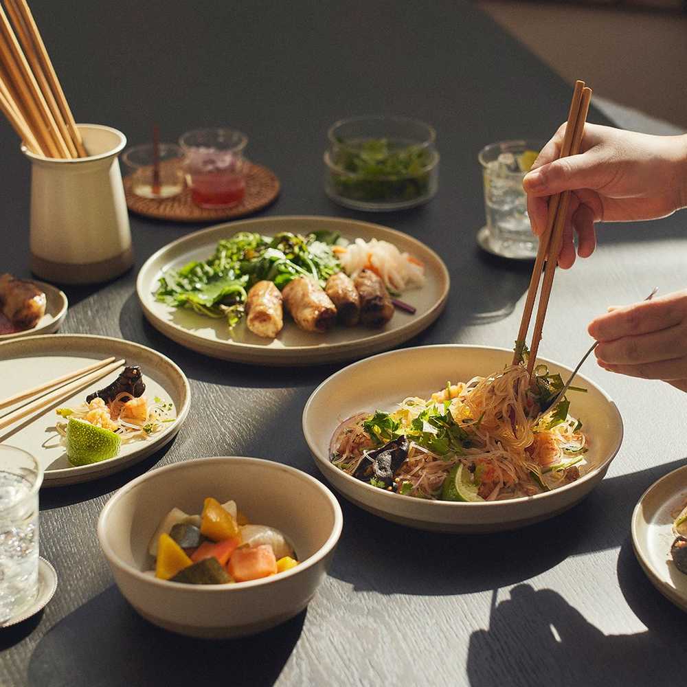 De kommen uit de serie CLK (CERAMIC LAB) van het Japanse KINTO zijn gemaakt van zandsteen dat uniek is voor de Hasami-regio. Zand en rotsen worden gemengd met Amakusa-porseleinsteen dat wordt gewonnen op de Amakusa eilanden. Deze porseleinklei zorgt voor duurzaamheid en diepe kleuren die worden gecreëerd door het ijzer in de zandsteen dat reageert met het glazuur. De kommen zijn in meerdere kleurvarianten te krijgen.