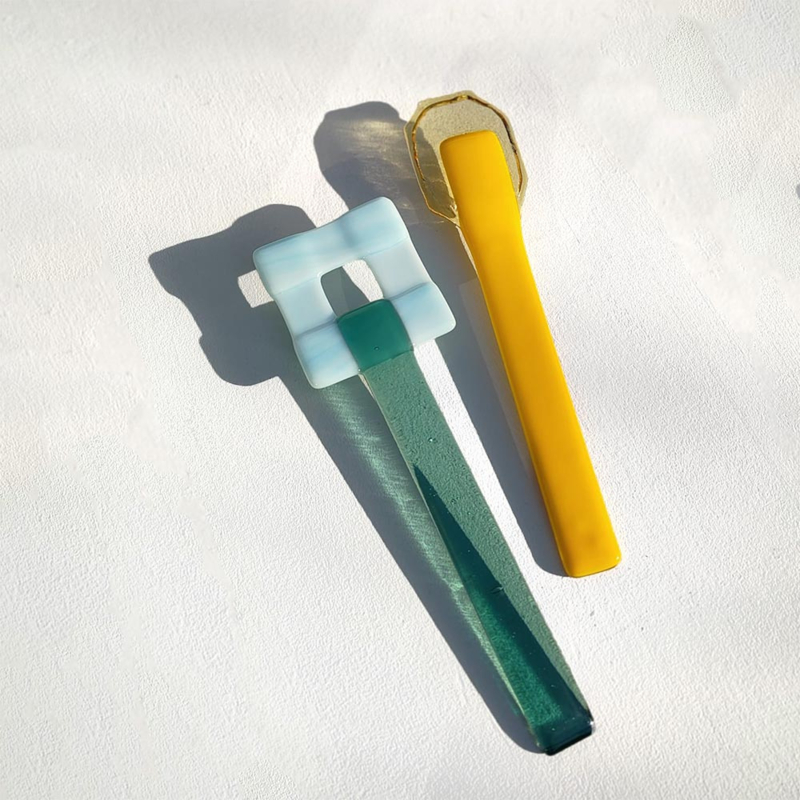 GLACE Salade bestek Medium Sea Green / Marigold - Saudade Fleur PetersOver de glazen lepels van Saudade / Fleur PetersMet de kleurrijke GLACE lepels combineert Studio Fleur Peters functionaliteit met uniek design. Langwerpige glazen handgrepen leiden naar zacht afgeronde lepels, handgemaakt in…