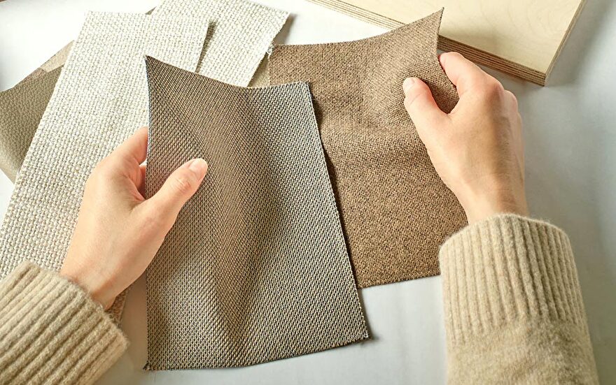 De meubelstoffen waarmee Gelderland meubels kunnen worden bekleed zijn van hoge kwaliteit en tevens zeer uitgebreid. Zoals bijvoorbeeld de stoffen van het Nederlandse De Ploeg of van het Deense merk Kvadrat. Het leer waarmee de bank te bekleden is is van Ohmann of van Van Leeuwen.